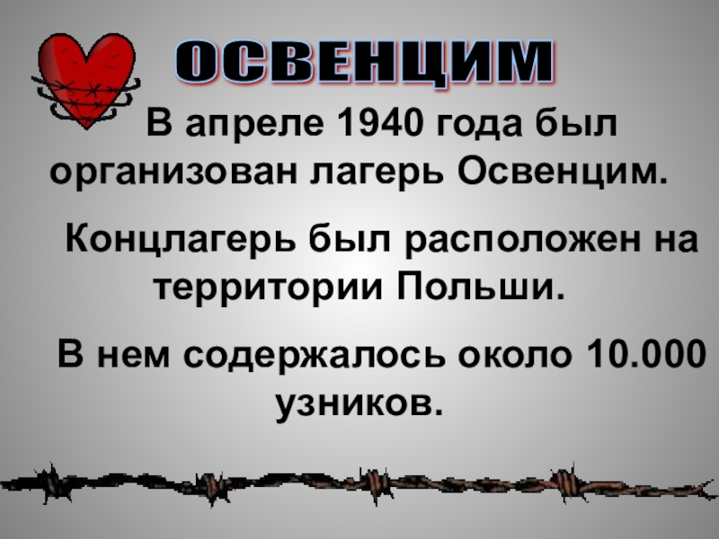 Слайд 21В апреле 1940 года был организован лагерь Освенцим.