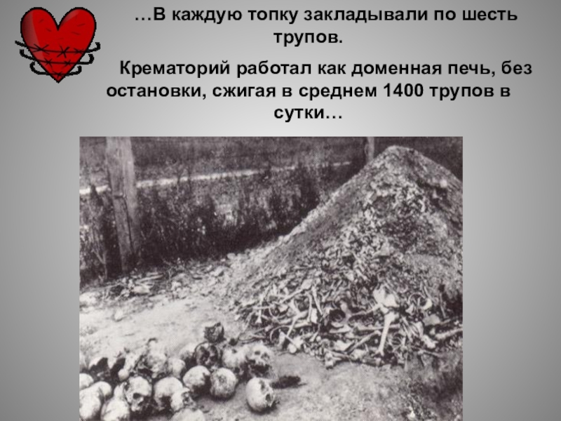 Слайд 19…В каждую топку закладывали по шесть трупов.