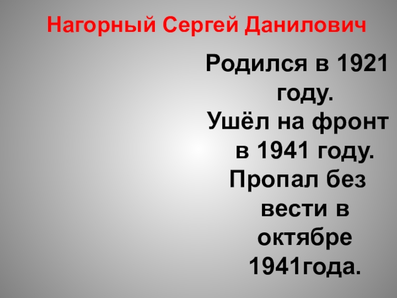 Родился в 1921г, ушёл на фронт