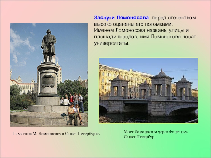 Памятник М. Ломоносову в Санкт-Петербурге.