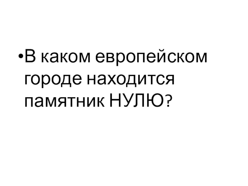 Слайд 2В каком европейском городе находится памятник НУЛЮ?