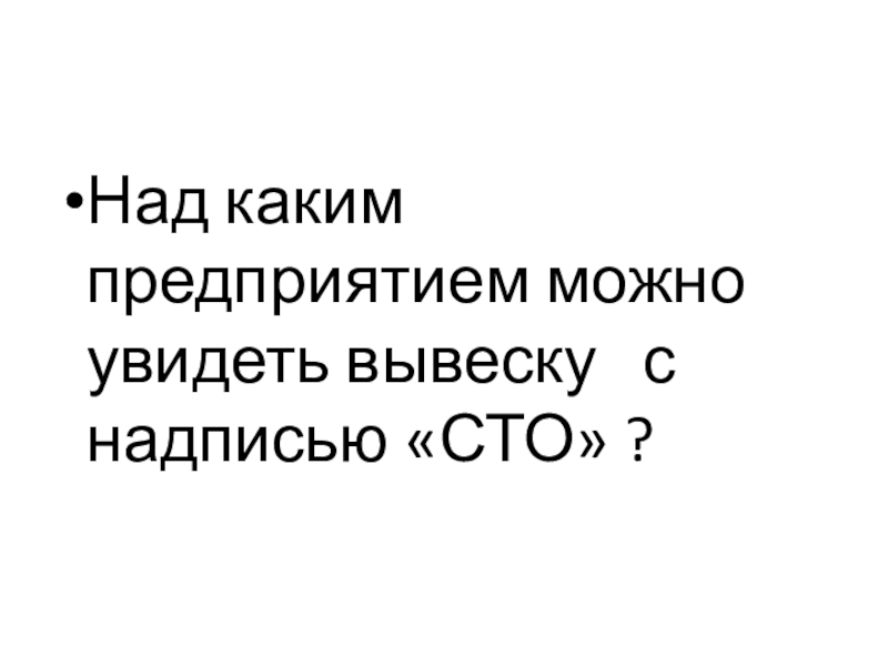 Слайд 8Над каким предприятием можно увидеть вывеску с надписью «СТО» ?