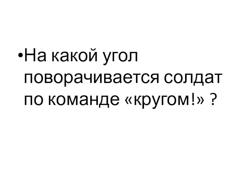 Слайд 24На какой угол поворачивается солдат по команде «кругом!» ?