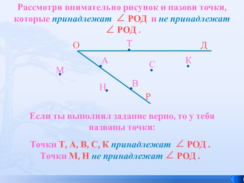 Точки М, Н не принадлежат ∠ РОД .