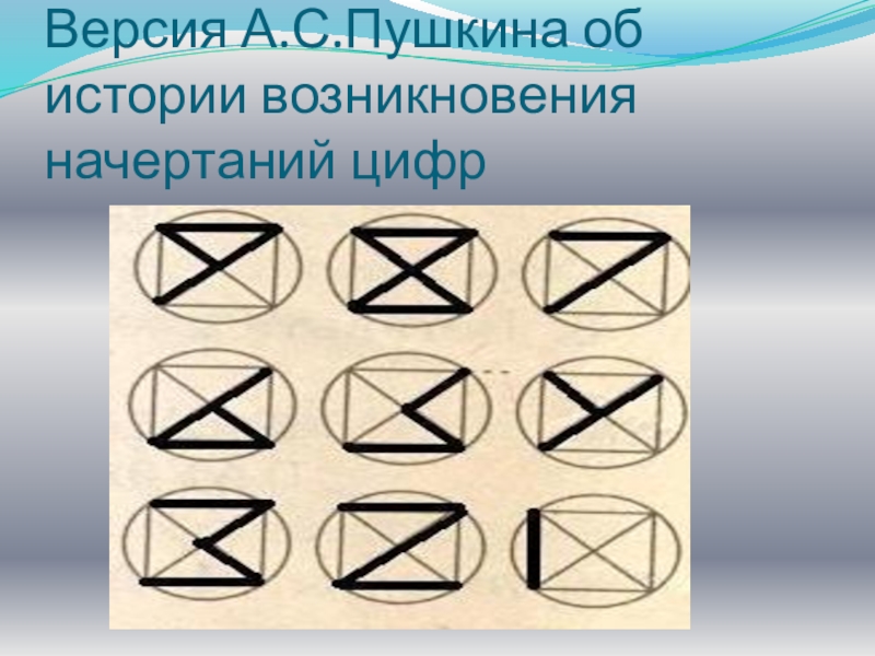 Слайд 3Версия А.С.Пушкина об истории возникновения начертаний цифр
