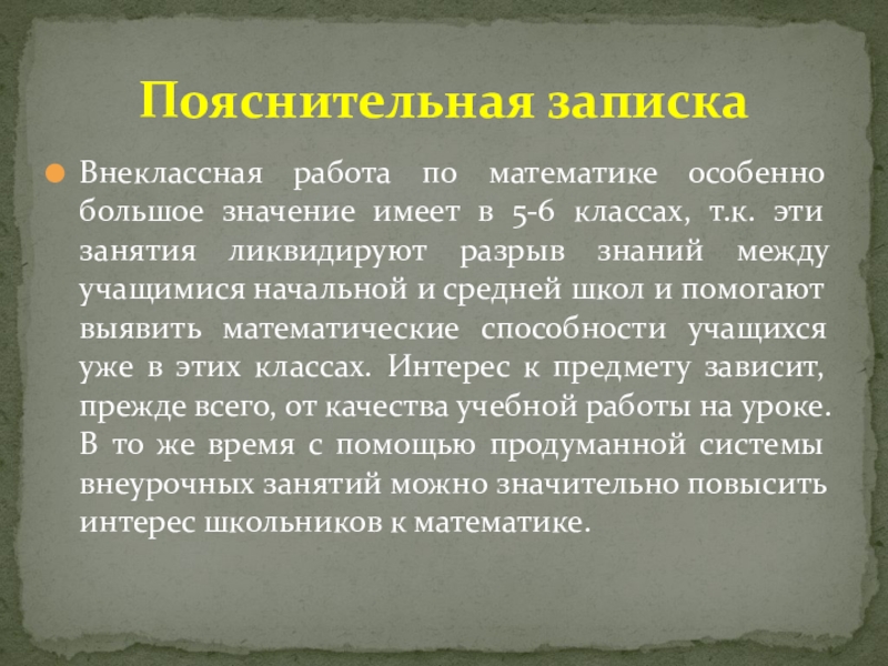 Пояснительная записка