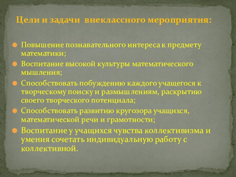 Цели и задачи внеклассного мероприятия: