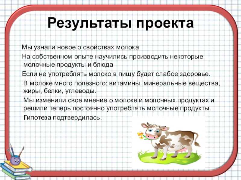 Мы изменили свое мнение о молоке и молочных продуктах и решили теперь постоянно употреблять молочные продукты.