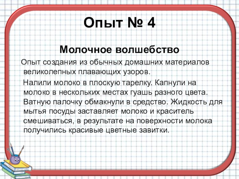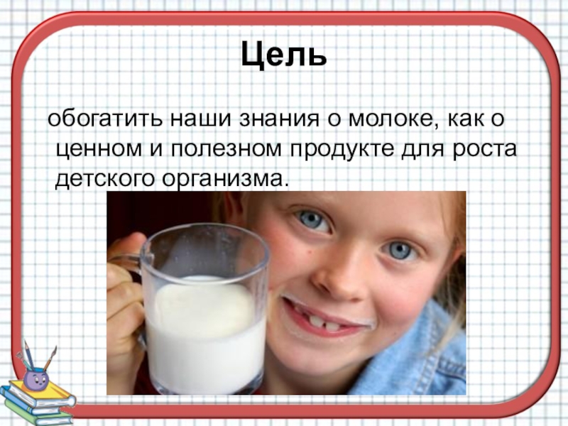 по своему химическому составу и биологическим свойствам занимает исключительное место среди продуктов животного происхождения, используемых в питании детей всех возрастных групп. Поэтому мы должны помочь раскрыть ценные качества молока, его значимость для развития детского организма.