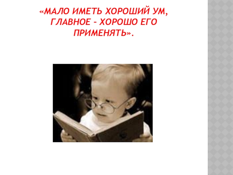 Слайд 11     «Мало иметь хороший ум, главное – хорошо его применять».