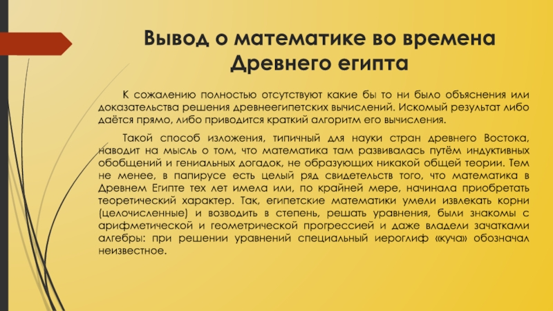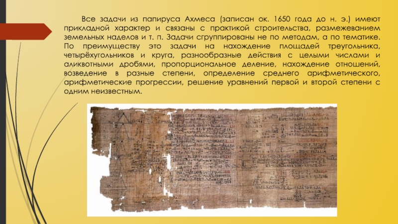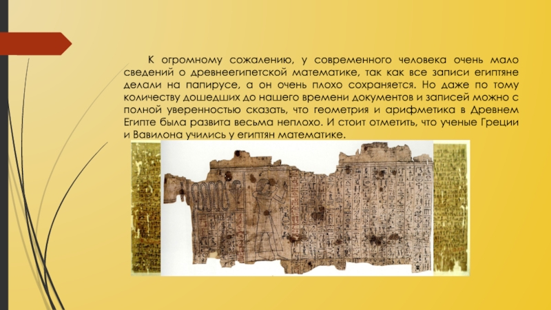 В Египте математика использовалась еще с самых древних времен, что подтверждается различными текстами, которые относятся к началу второго тысячелетия до н.э.