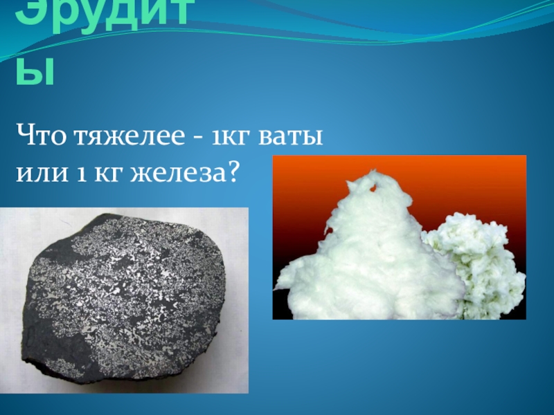 ЭрудитыЧто тяжелее - 1кг ваты или 1 кг железа?