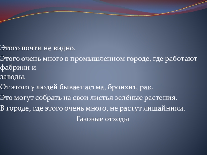 Этого почти не видно. Этого очень много в промышленном городе, где работают фабрики и заводы. От этого
