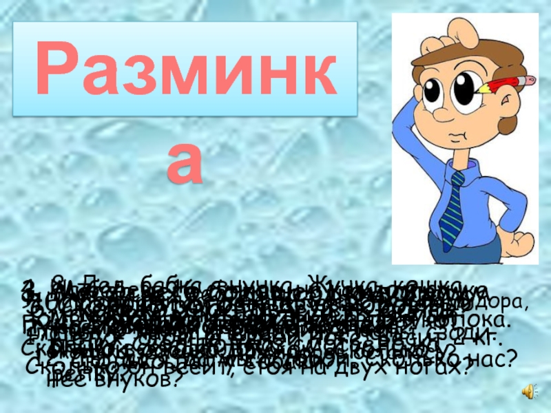 11. У бабушки Даши внук Паша, кот Пушок, собака Дружок. Сколько у нее внуков?