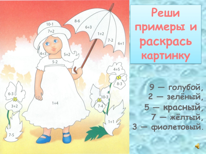 Реши примеры и раскрась картинку