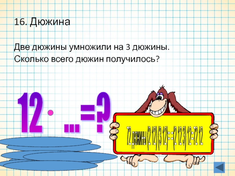 72 дюжины (2 12) (3 12)= =(2 12 3) 12=72 12