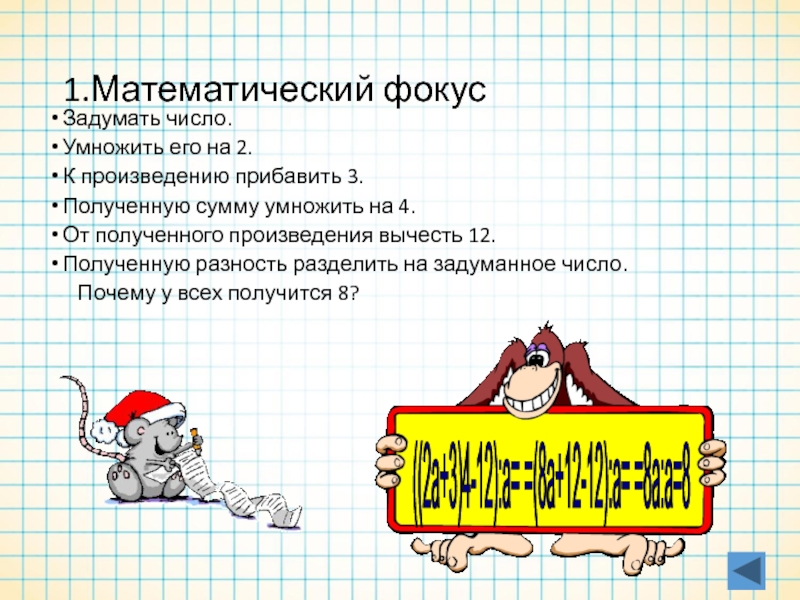 ((2а+3)4-12):а= =(8а+12-12):а= =8а:а=8
