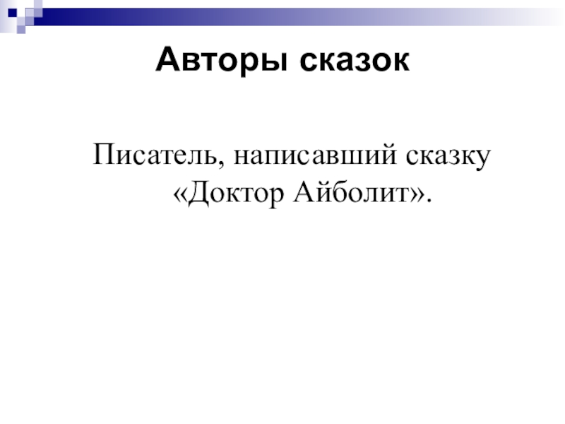 Авторы сказокПисатель, написавший сказку «Доктор Айболит».