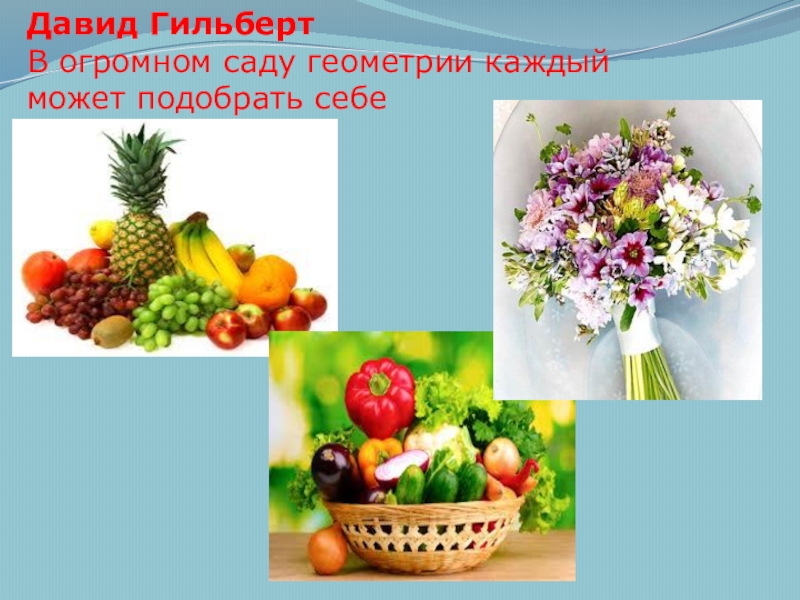 Давид ГильбертВ огромном саду геометрии каждыйможет подобрать себе