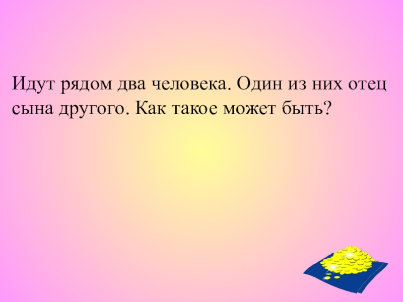 Слайд 4Идут рядом два человека. Один из них отец сына другого. Как