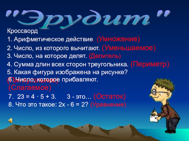 7. 23 = 4 · 5 + 3. 3 - это… (Остаток)