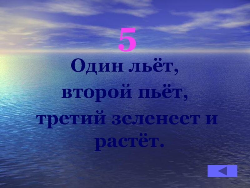 5Один льёт, второй пьёт, третий зеленеет и растёт.