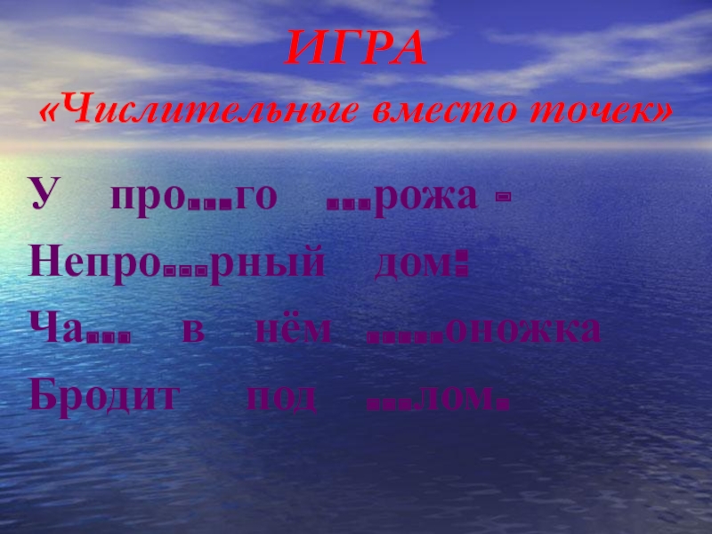 ИГРА «Числительные вместо точек»У  про…го  …рожа -Непро…рный  дом:Ча…  в  нём …..оножкаБродит
