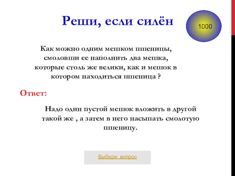 Как можно одним мешком пшеницы, смоловши ее наполнить два мешка,