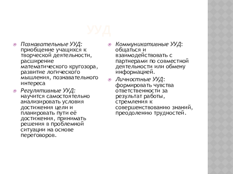 Коммуникативные УУД: общаться и взаимодействовать с партнерами по совместной деятельности или обмену информацией.