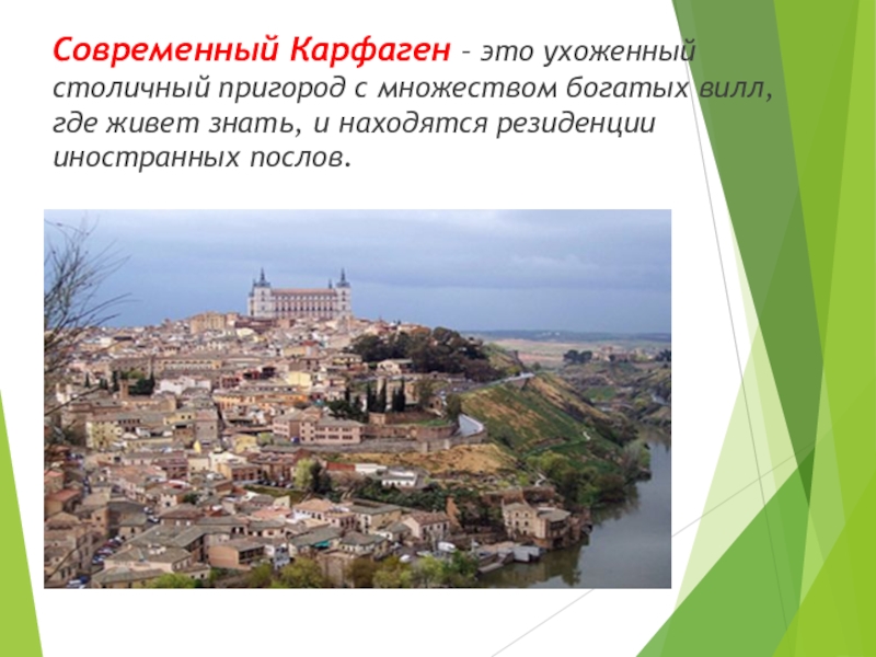 Слайд 4Современный Карфаген – это ухоженный столичный пригород с множеством богатых вилл,