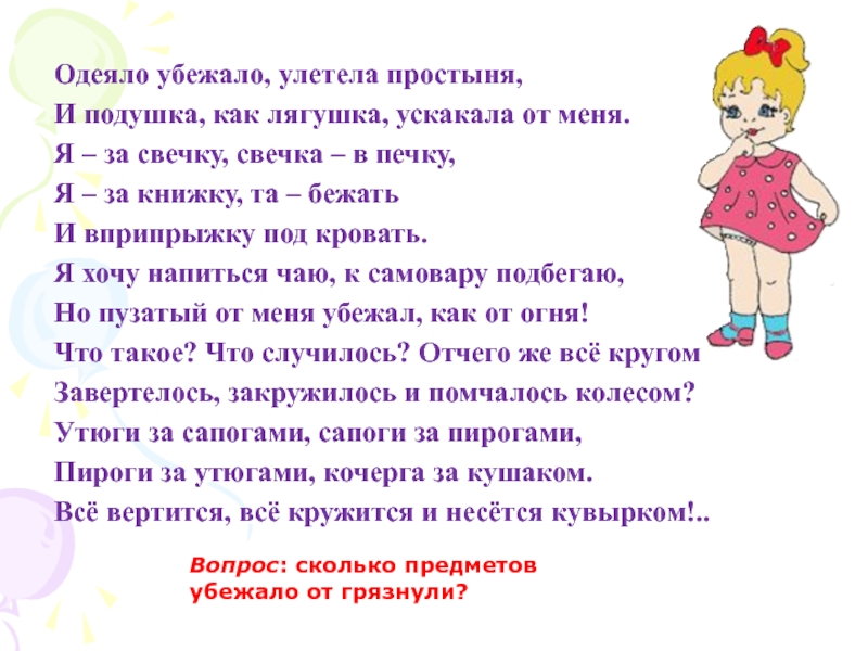 Вопрос: сколько предметов убежало от грязнули?