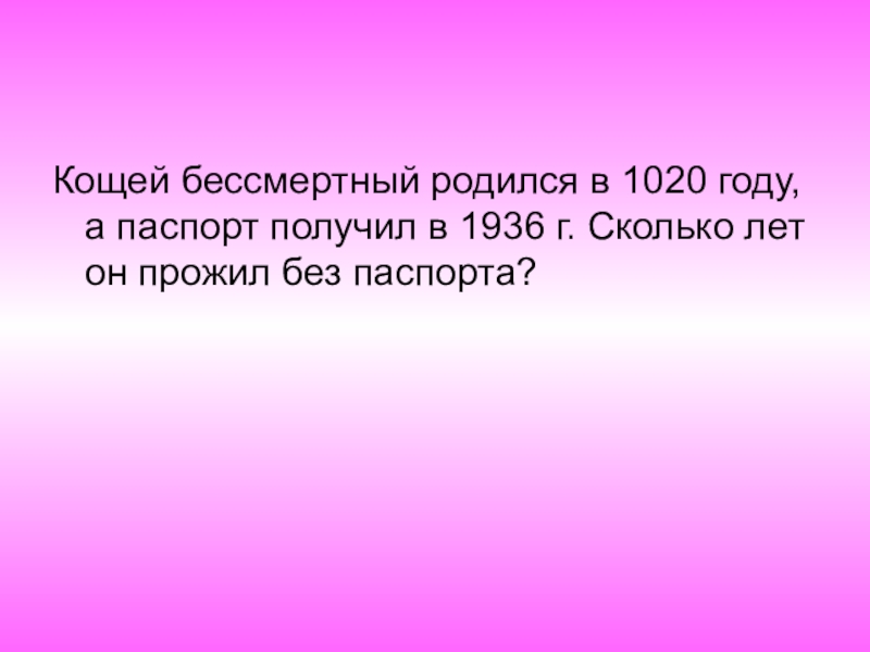 Слайд 11Кощей бессмертный родился в 1020 году, а паспорт получил в 1936