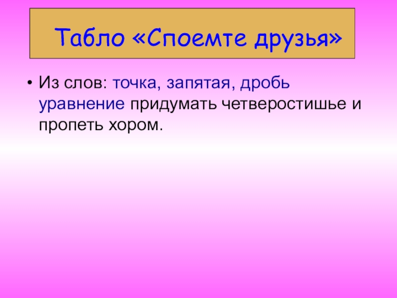 Из слов: точка, запятая, дробь уравнение придумать четверостишье и