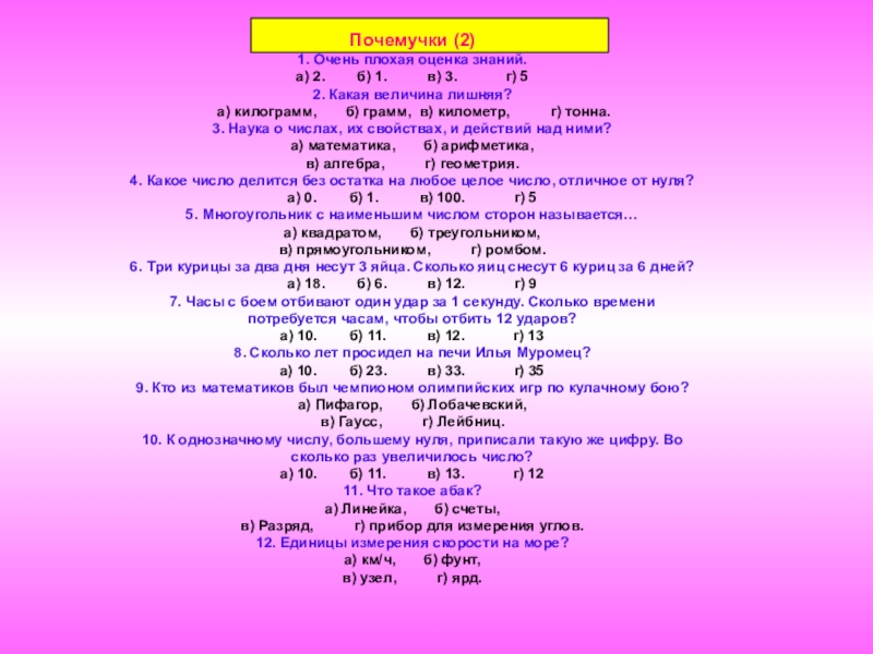 а) килограмм, б) грамм, в) километр, г) тонна.