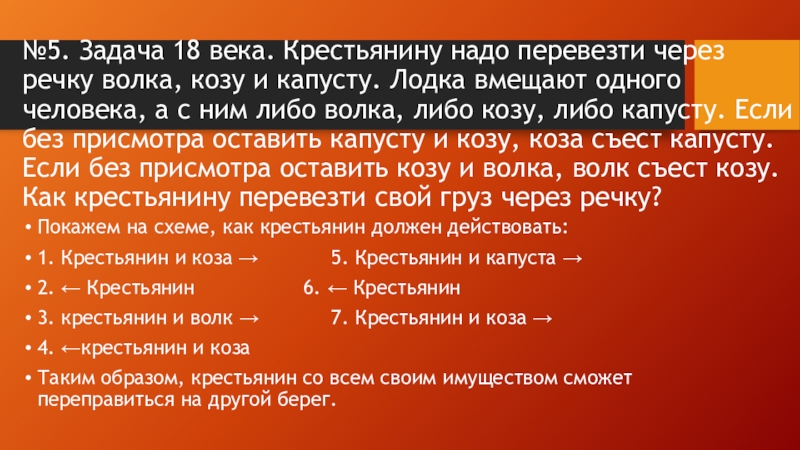 1. Крестьянин и коза → 5. Крестьянин и капуста →