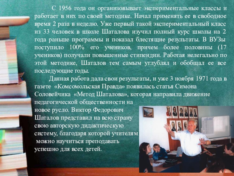 Слайд 7 С 1956 года он организовывает экспериментальные классы