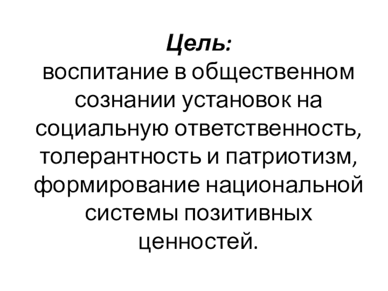воспитание в общественном сознании установок на социальную ответственность, толерантность и патриотизм,