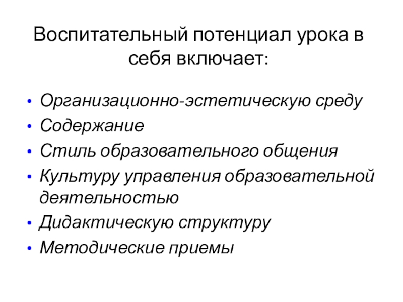 Воспитательный потенциал урока в себя включает: