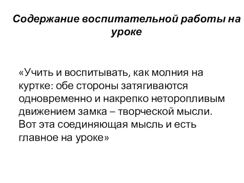 обе стороны затягиваются одновременно и накрепко неторопливым движением замка – творческой мысли. Вот эта соединяющая мысль и есть главное на уроке»