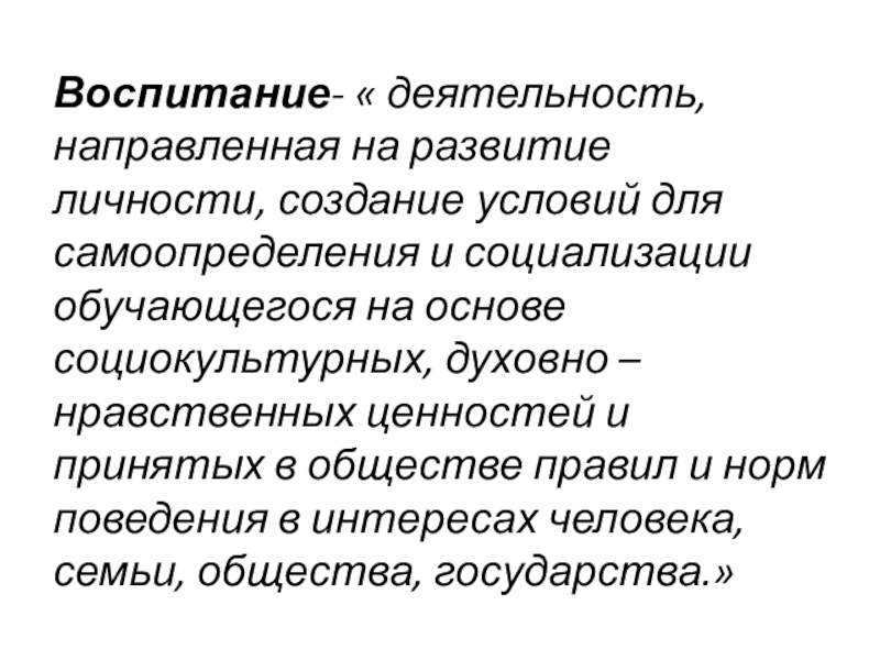 Слайд 3Воспитание- « деятельность, направленная на развитие личности, создание условий для самоопределения
