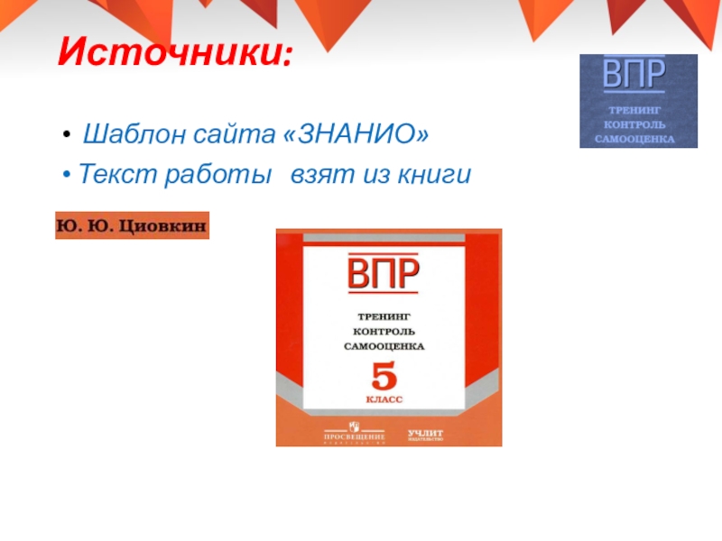Источники: Шаблон сайта «ЗНАНИО»Текст работы  взят из книги