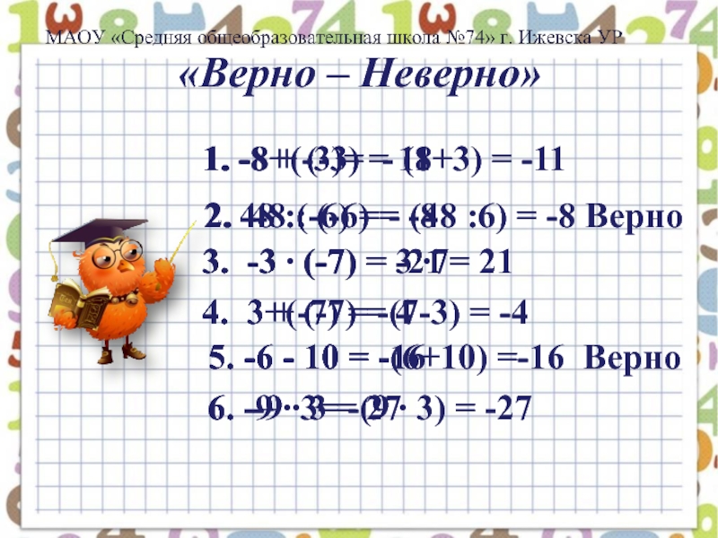 2. 48 :(-6) = - (48 :6) = -8 Верно