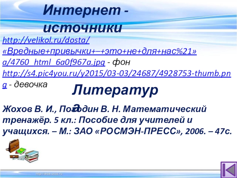 Это сайт презентаций, где можно хранить и обмениваться своими презентациями, докладами, проектами, шаблонами в формате PowerPoint с другими пользователями. Мы помогаем школьникам, студентам, учителям, преподавателям хранить и обмениваться учебными материалами.