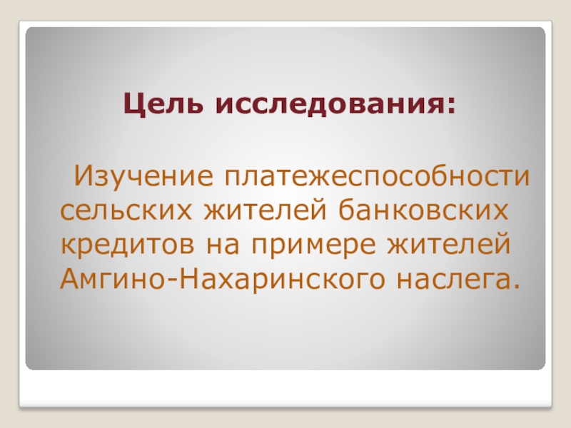 Изучение платежеспособности сельских жителей банковских кредитов на примере