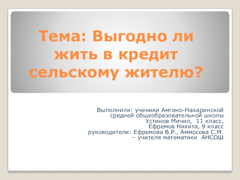Слайд 1Тема: Выгодно ли жить в кредит сельскому жителю?