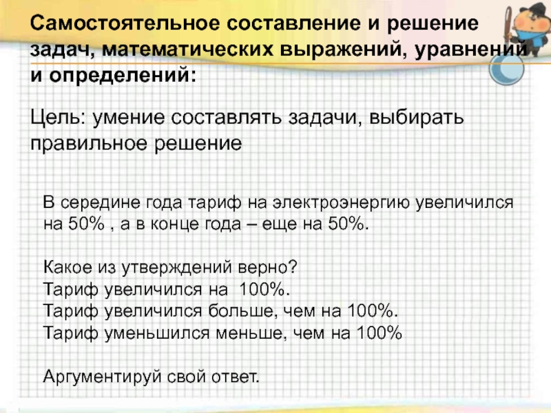 Слайд 21Самостоятельное составление и решение задач, математических выражений, уравнений и определений: