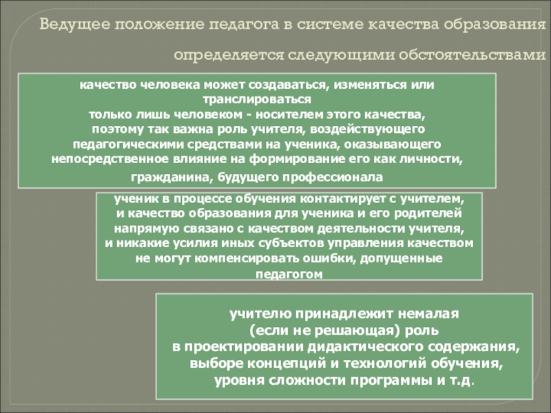 напрямую связано с качеством деятельности учителя,