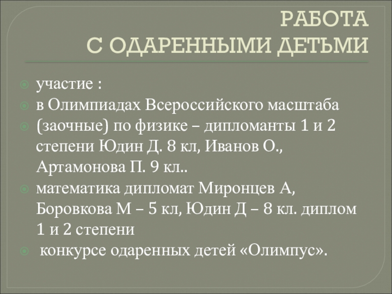 РАБОТА С ОДАРЕННЫМИ ДЕТЬМИ