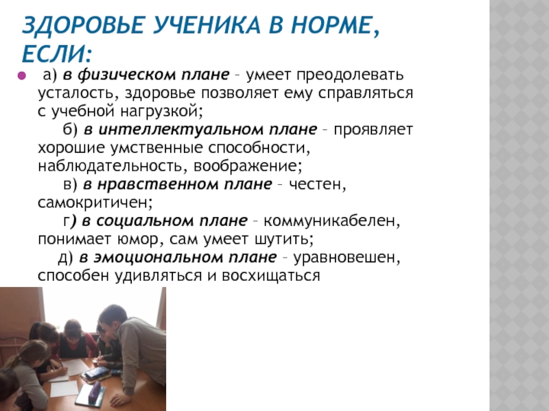 Слайд 4ЗДОРОВЬЕ УЧЕНИКА В НОРМЕ, ЕСЛИ: