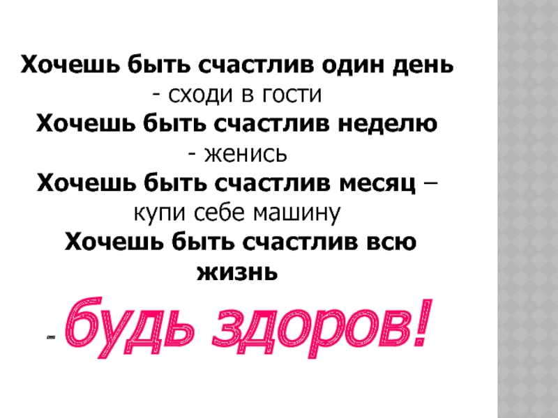 Слайд 17Хочешь быть счастлив один день